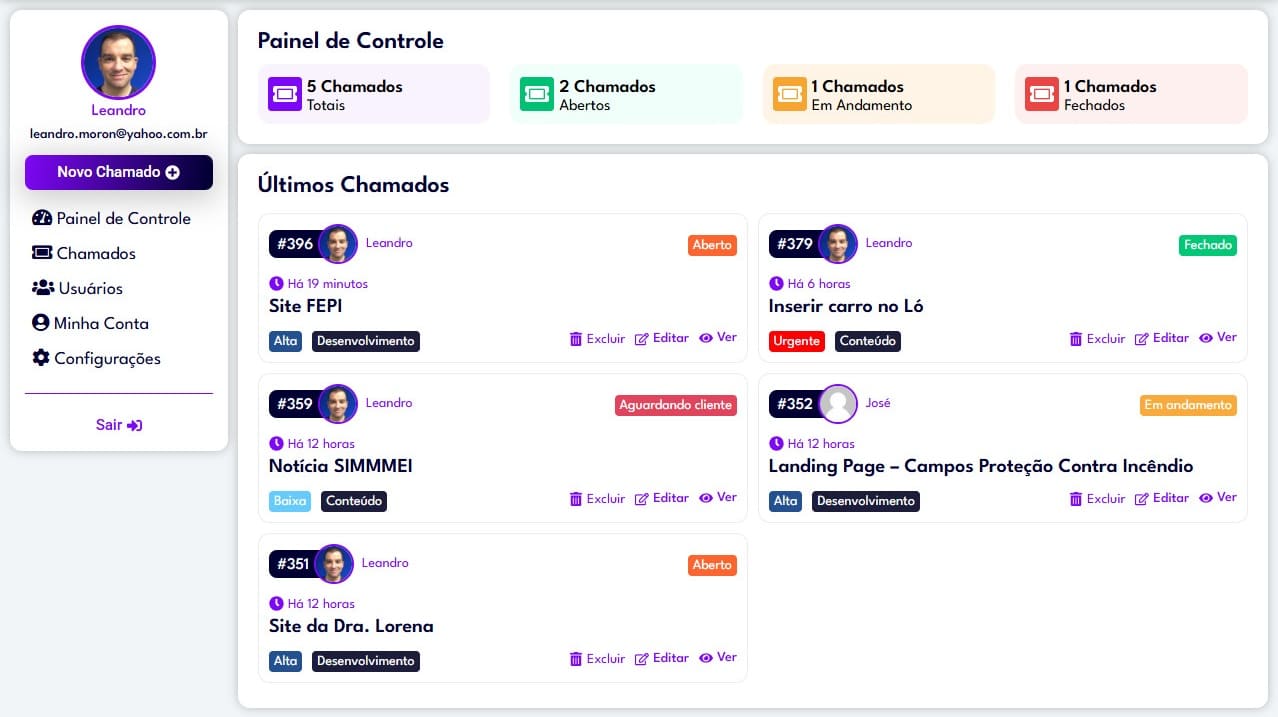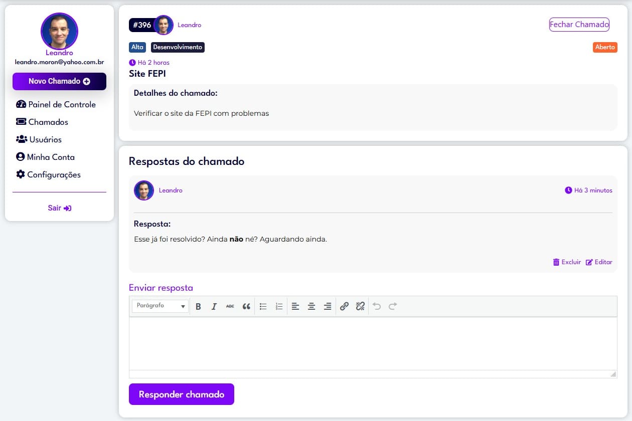 Seu cliente pode se cadastrar e ter acesso aos chamados criados por ele, inclusive deixar comentários